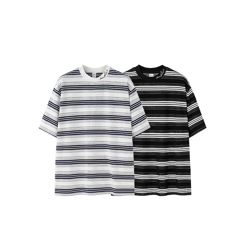 Be the first to review “Men’s Striped T-shirt Fine Woven Plaid Loose Street Embroidery”